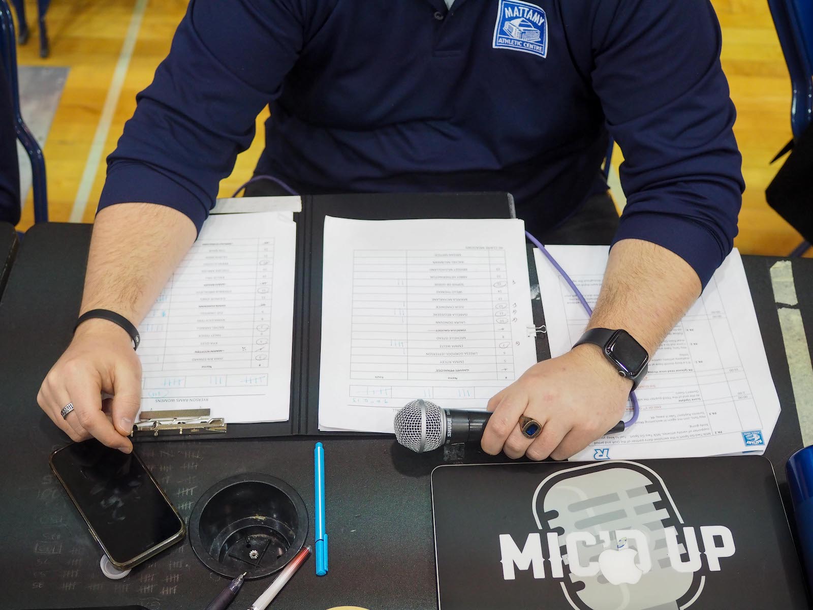 Throughout his years on the mic, MacDonald has established several rituals that he does before and after games. One of them includes keeping track of every game he’s called in a tally on the scorers table—he’s announced almost 300 games to date.